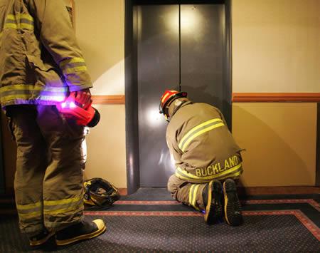6. Đến cửa tầng dừng có cabin và dùng chìa khoá khẩn cấp để mở khoá cửa tầng rồi dùng tay mở cả cửa tầng lẫn cửa cabin để giải thoát hành khách ra.